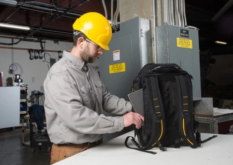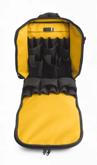 - Le dessous du sac à dos est rendu étanche pour protéger les instruments de test et de mesure stockés