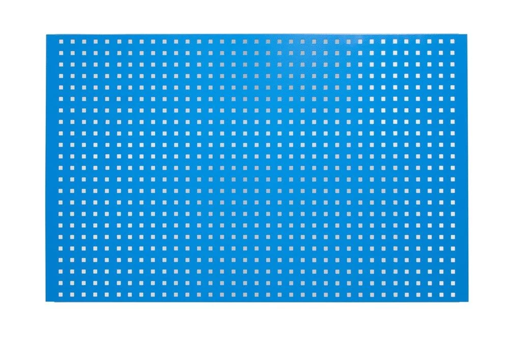 - Deze geperforeerde metalen gereedschapswand is voorzien van gaten voor de bevestiging van gereedschapshaken en bakken.