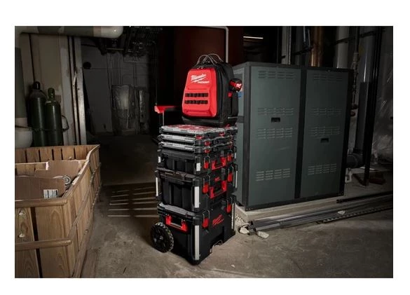 - Base en polymère résistante aux impacts et protégeant les outils de l’eau et de la poussière ; permet au sac de se maintenir debout