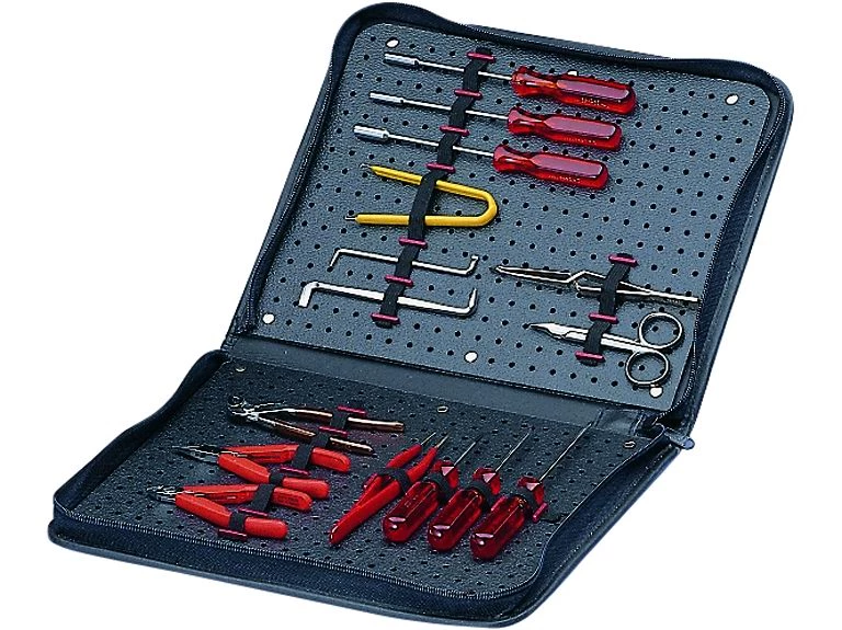 - Chemise avec fermeture éclair et 2 feuilles perforées, 20 clips et 1 mètre de ruban adhésif.