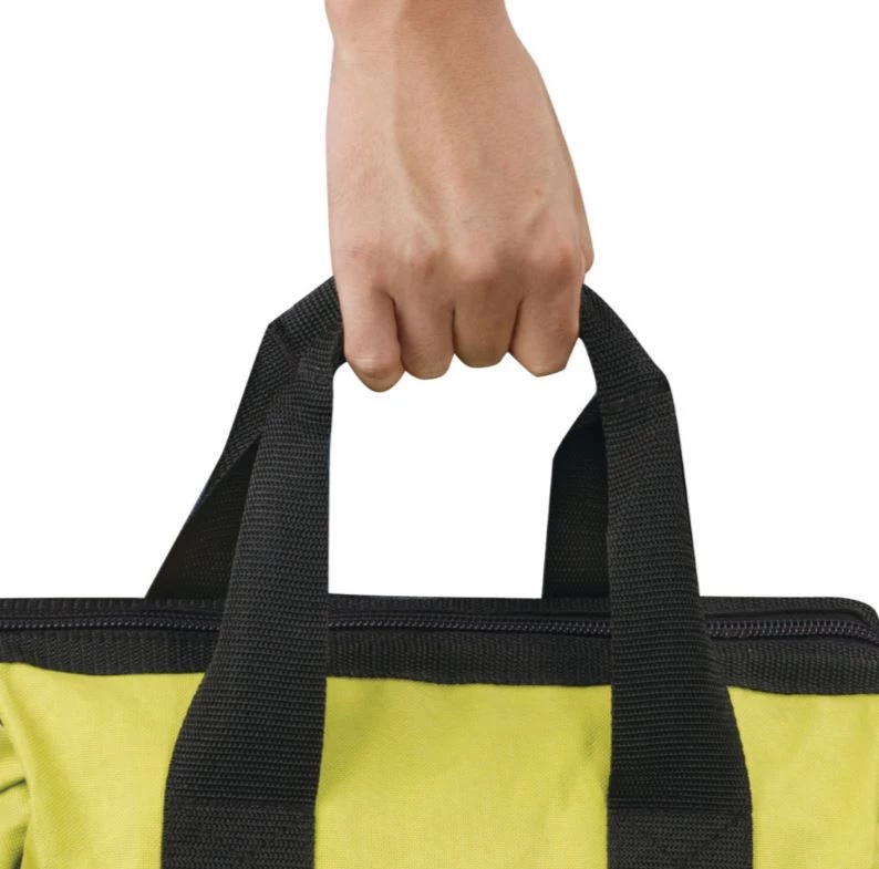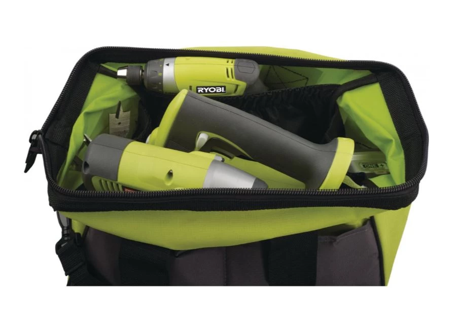 - Le sac de transport UTB2 de Ryobi peut contenir jusqu’à trois machines, deux batteries et un chargeur.