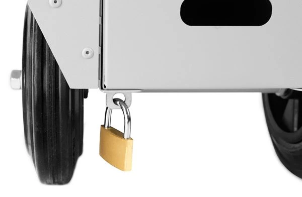- Les deux tiroirs peuvent être verrouillés en attachant un cadenas (non fourni) à la goupille de verrouillage.
