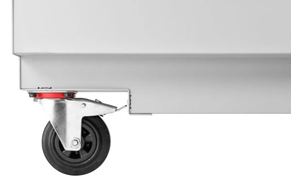 - Extrêmement maniable grâce à sa roulette fixe à frein unique.