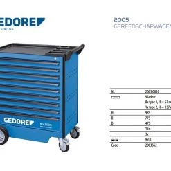 Gedore Servante Atelier 2005 S-270 TRUCK Chariot à Outils Avec 7 Tiroirs 270-pièces 3100073