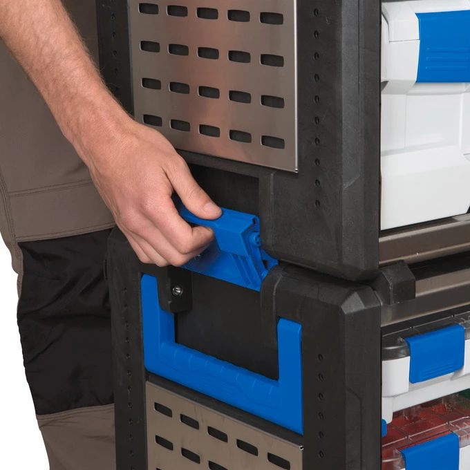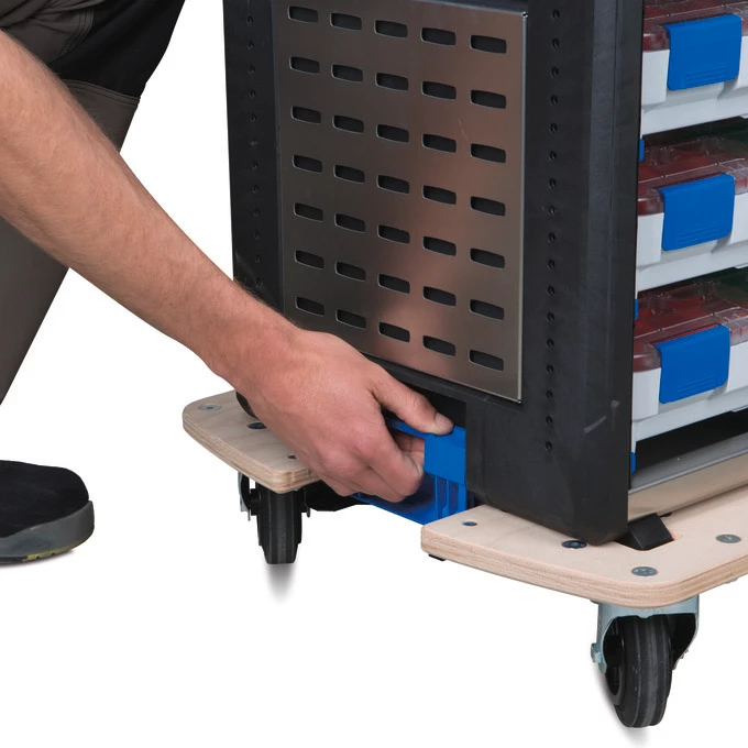 - En outre, le WorkMo sert de chariot d’atelier pratique dans lequel on peut ranger les outils et les équipements de travail.