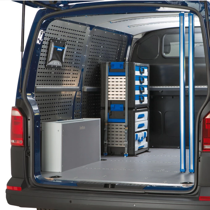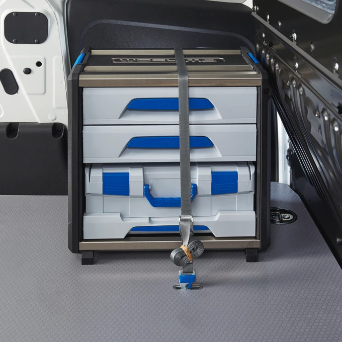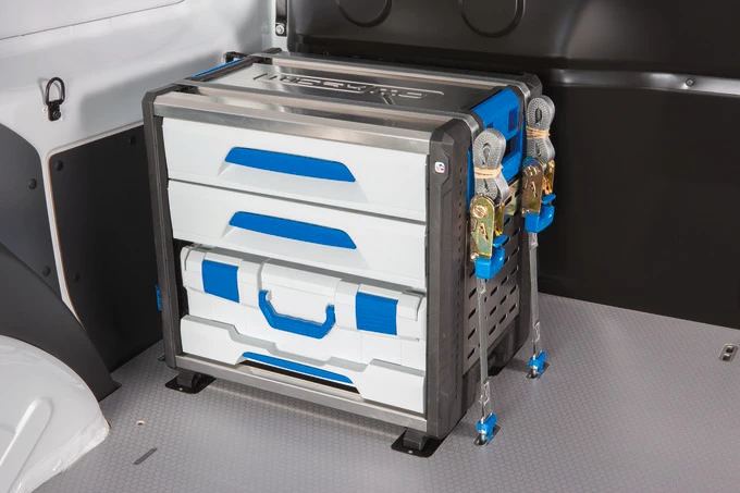 - Le MultiSlide offre de l’espace pour les valises et les BOXX (valises métalliques jusqu’à 340, BOXX L jusqu’à 136) et, grâce à son extension complète, vous avez un accès libre à tout le contenu.